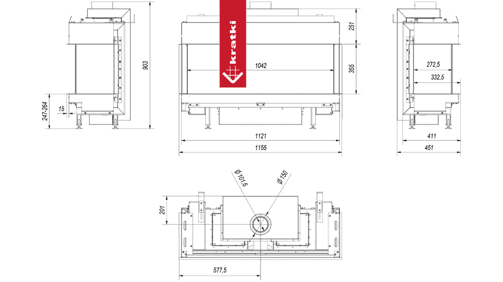 Kratki gaskamin kratki leo 100 dreiseitig propan butan ? 100/150 9,5 kw