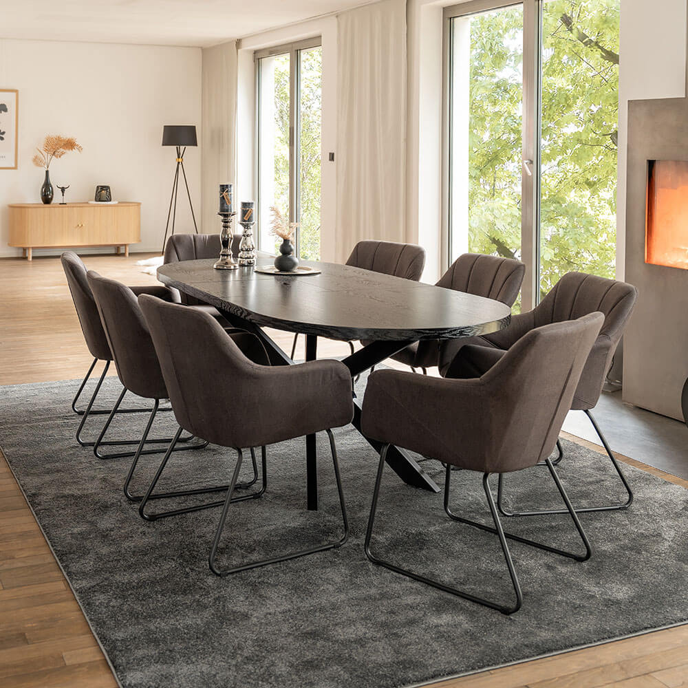 Home deluxe essgruppe oval ausziehbar inkl. sternfuß - 160 x 100 cm dark oak 8 stühle anthrazit