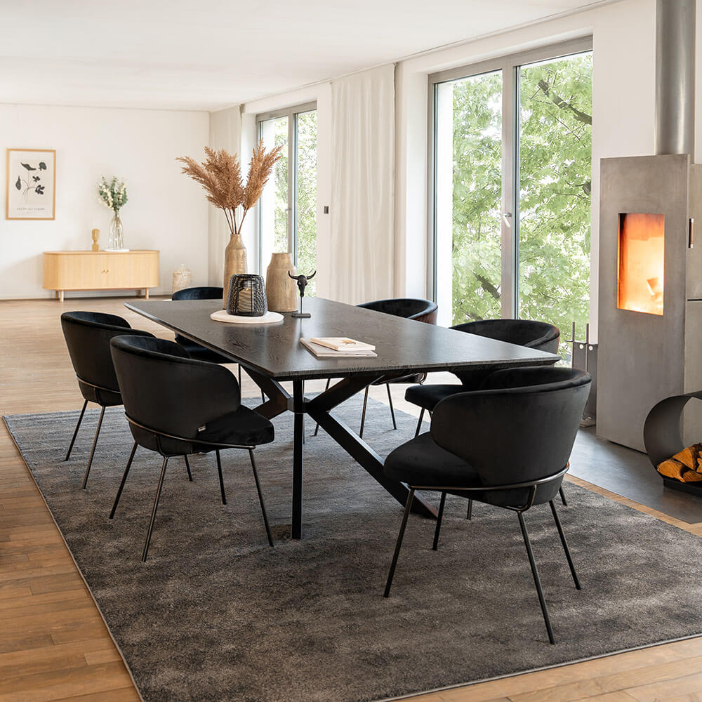 Home deluxe essgruppe eckig avencia inkl. sternfuß - 200 x 120 cm dark oak 6 stühle grau