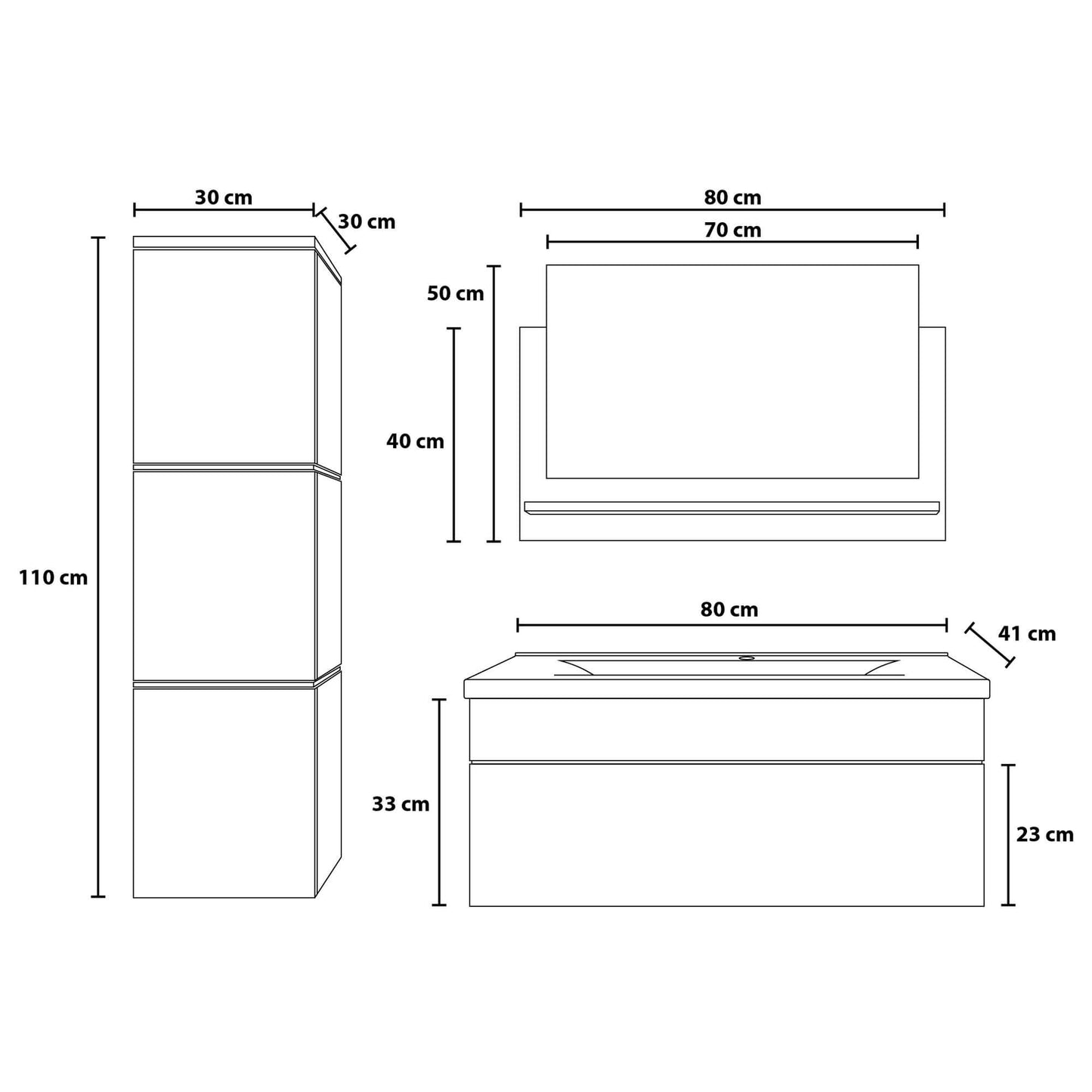 - Maße Unterschrank (H x B x T): 33 x 80 x 41 cm