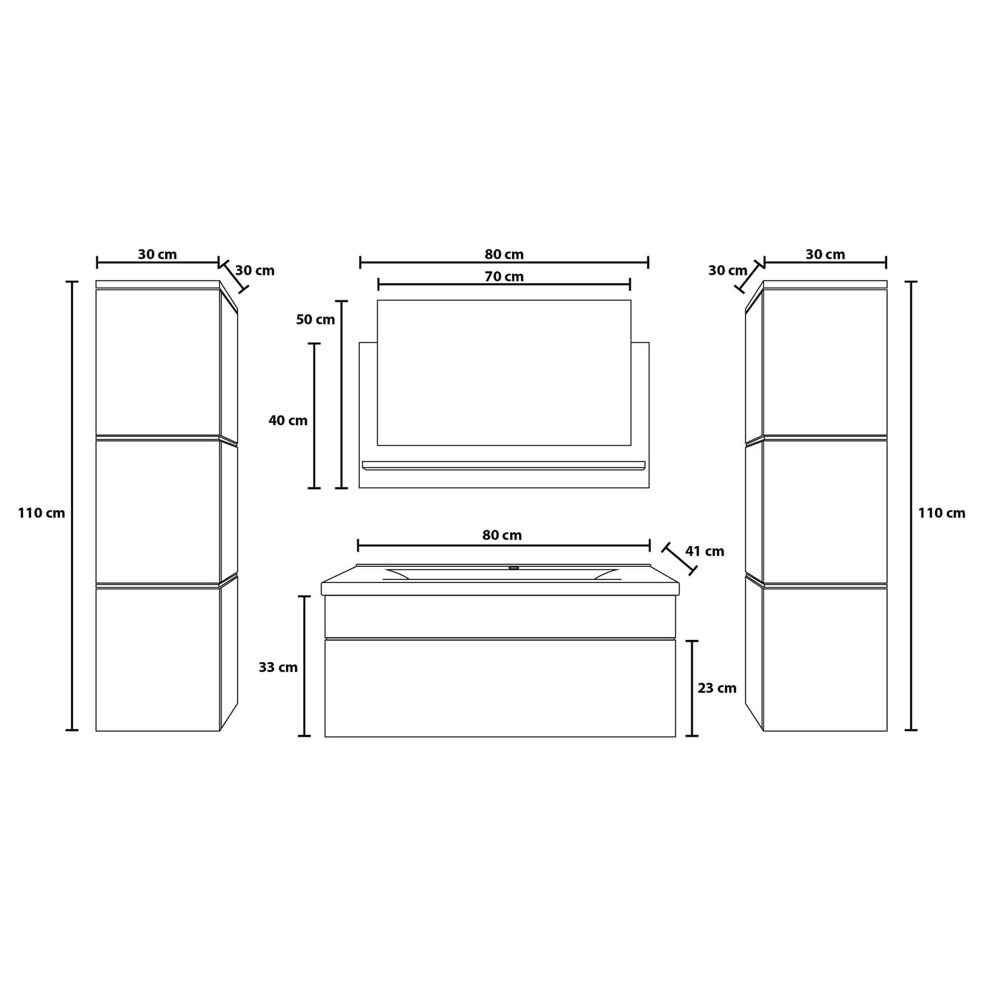 • Maße Unterschrank (H x B x T): 33 x 80 x 41 cm