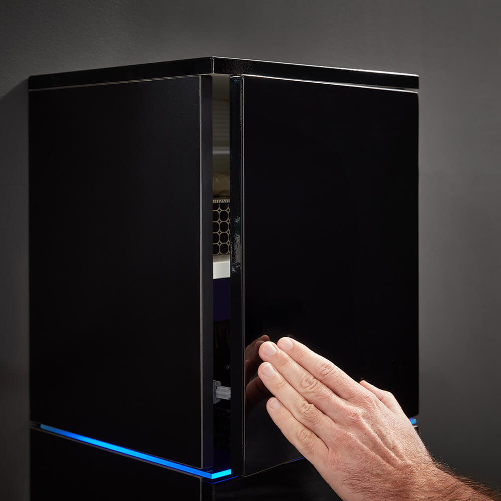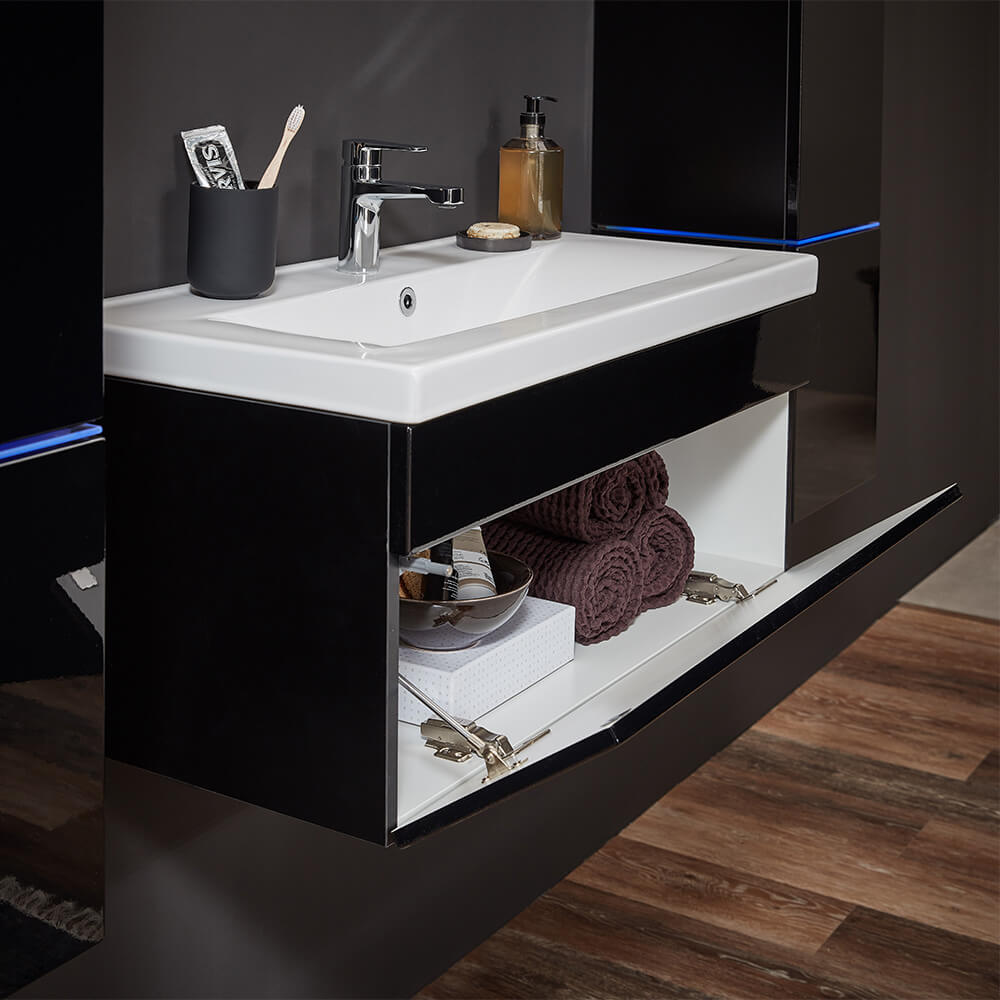 • Fronten Hochglanz lackiert, Seiten matt melaminschwarz