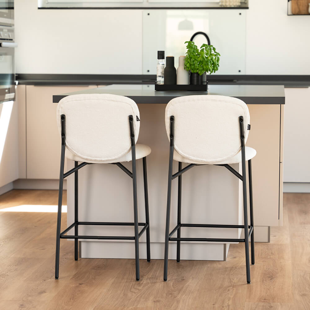 Mit seinem modernen Design und seinem einladenden Komfort ist er die ideale Wahl für deine Küche. Erhältlich in zwei ansprechenden Farben: Samt Hellbraun und Bouclé Weiß ist der Barhocker nicht nur ein Hingucker, sondern auch äußerst vielseitig. Ein wichtiges Merkmal des Barstuhls ist seine Konstruktion. Anders als herkömmliche Thekenhocker ist unser Barhocker CELDA speziell für Küchenbars konzipiert. Das bedeutet, dass er die perfekte Höhe hat, um sich bequem an deine Küchentheke anzupassen und dir ein entspanntes Sitzgefühl zu bieten. Das Gestell ist aus robustem Metall gefertigt, was nicht nur für Stabilität sorgt, sondern auch für eine moderne Ästhetik. Egal, ob du ein schnelles Frühstück genießt oder mit Freunden ein Glas Wein trinkst, unser Barstuhl ist der ideale Begleiter für deine Küchenbar.