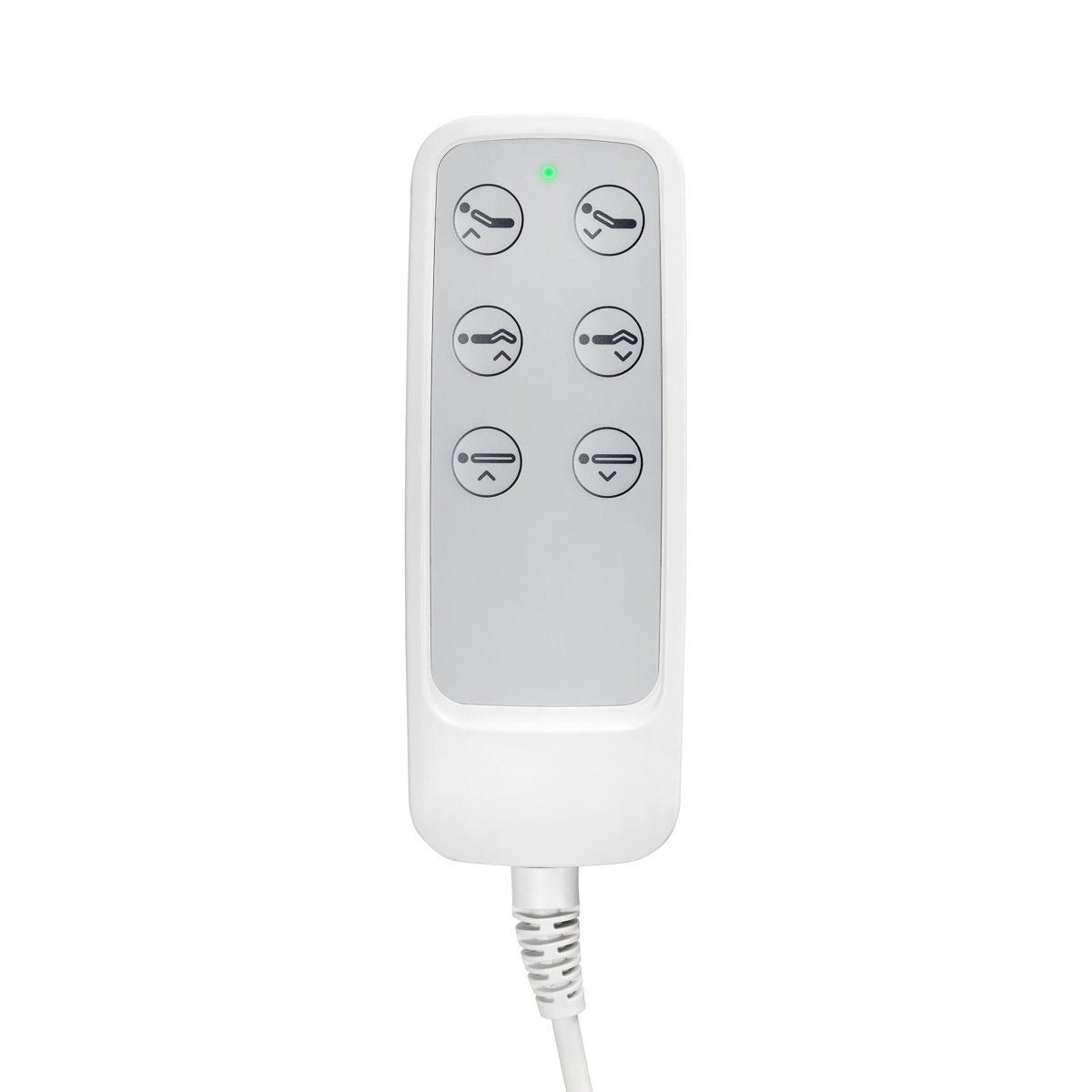Freie Einstellung mit der Fernbedienung Mithilfe der intuitiven Fernbedienung kann der Stuhl fließend in drei Ebenen angepasst werden – mit Höhenverstellung sowie Neigungswinkel von Rücken- und Fußteil. Dies ermöglicht eine freie Positionierung je nach durchgeführter Behandlung, was sowohl den Komfort des Nutzers als auch der behandelnden Person erhöht.