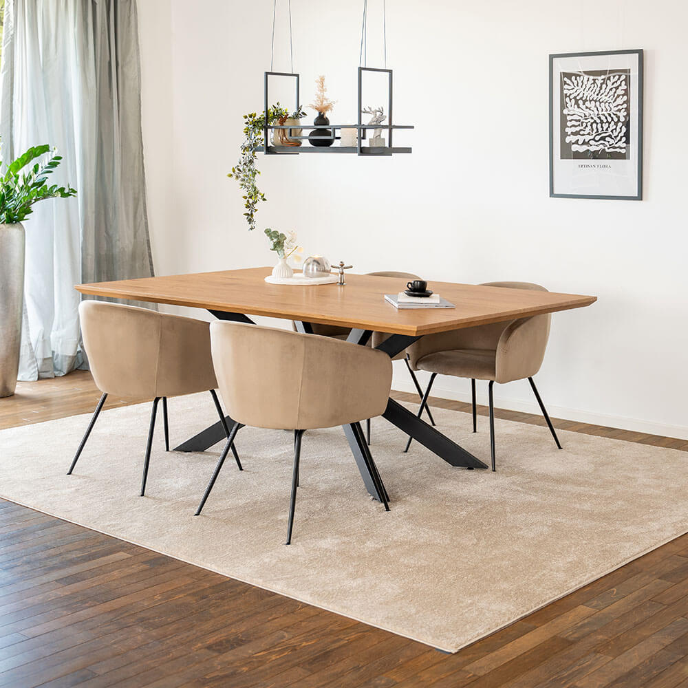 Home Deluxe Essgruppe Eckig AVENCIA inkl. Sternfuß - 200 x 120 cm Light Oak 4 Stühle