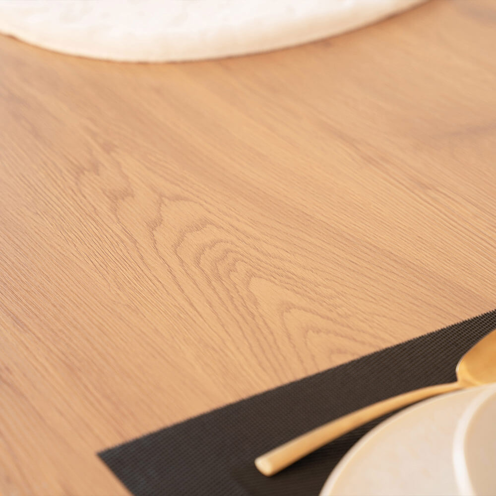 Der Tisch ist mit einem stabilen Sternfuß ausgestattet, der nicht nur modern aussieht, sondern auch eine sichere Basis für alle Gelegenheiten bietet – von gemütlichen Abendessen bis hin zu größeren Treffen. Die stabile Konstruktion sorgt für Langlebigkeit, während die bodenschonenden Eigenschaften deinen Boden schützen. Die pflegeleichte Oberfläche macht die Reinigung spielend einfach, sodass du mehr Zeit für das Wesentliche hast.