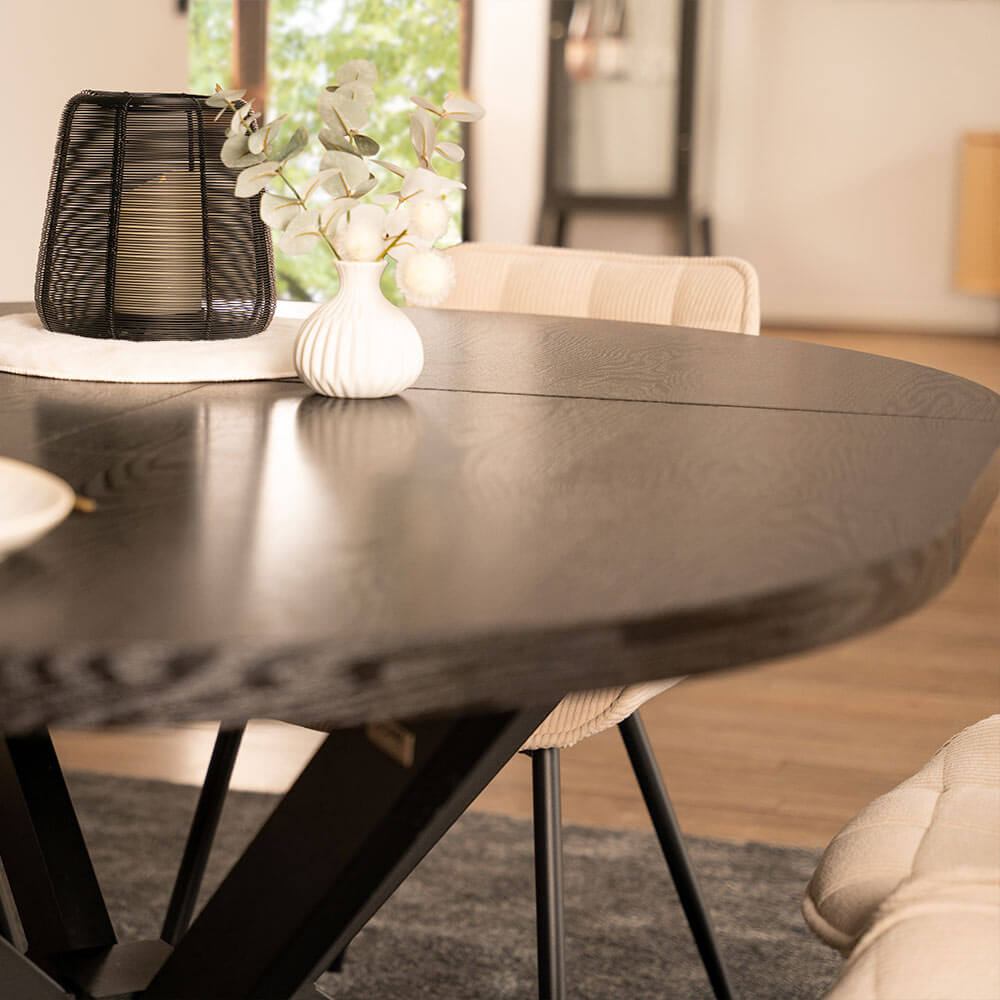 Home Deluxe Essgruppe Rund Ausziehbar AVENTURA inkl. Sternfuß - 120-160 x 120 cm Dark Oak 4 Stühle Creme