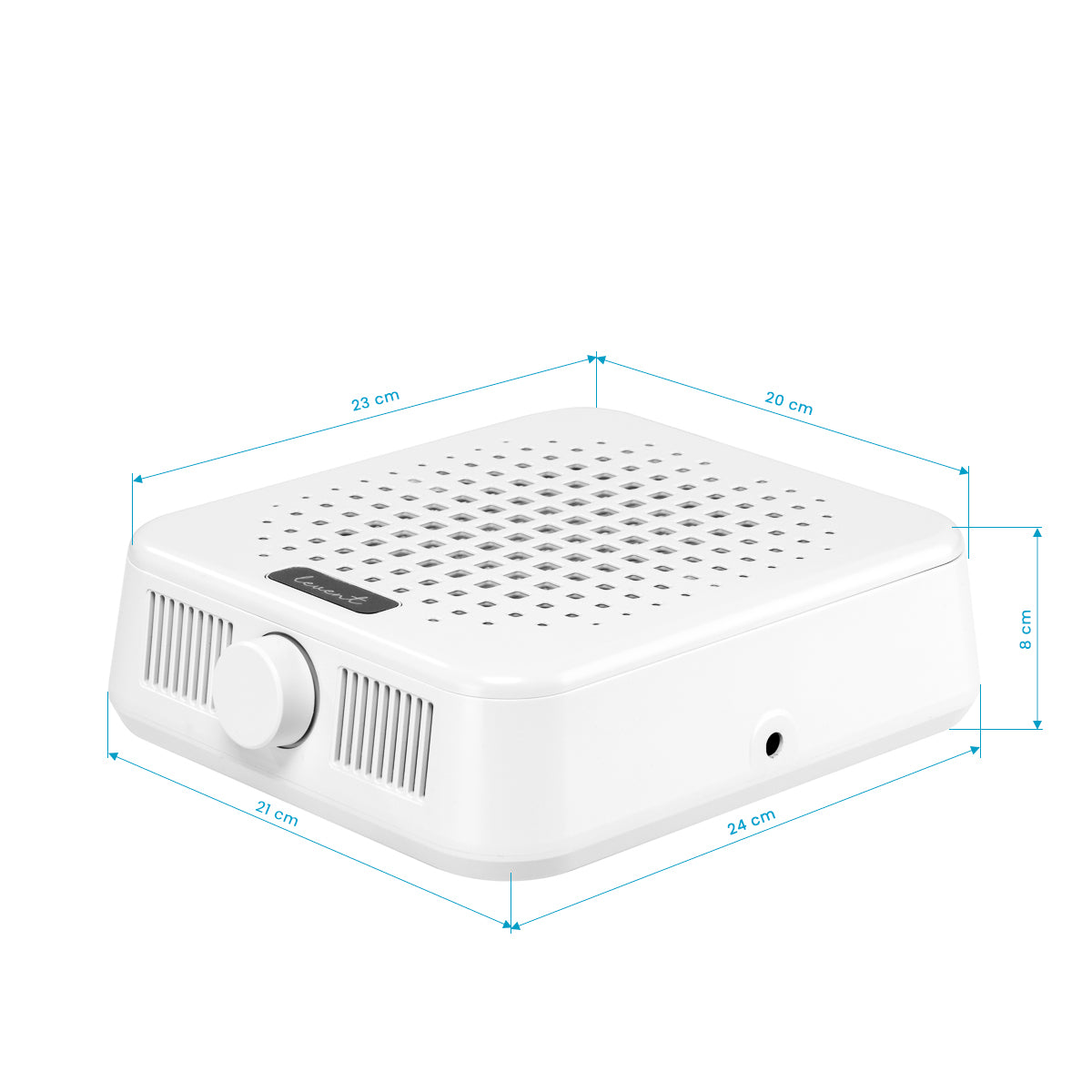 Leistungsstarker Staubabsauger mit ausreichender Kraft Beim Arbeiten mit der Fräse entsteht eine beträchtliche Menge Staub, der bei längerem Kontakt gesundheitsschädlich sein kann. Daher lohnt es sich, in einem Nagelstudio in einen leistungsfähigen Absauger zu investieren, der skutecznie die Luft reinigt, den Hygienestandard erhöht und sowohl der Stylistin als auch den Kundinnen Komfort bietet. Dank eines hochdrehenden Lüfters saugt das Gerät den bei der Maniküre entstehenden Staub schnell und skutecznie ein und leitet ihn direkt zu effizienten Filtern, die selbst die feinsten Partikel auffangen.