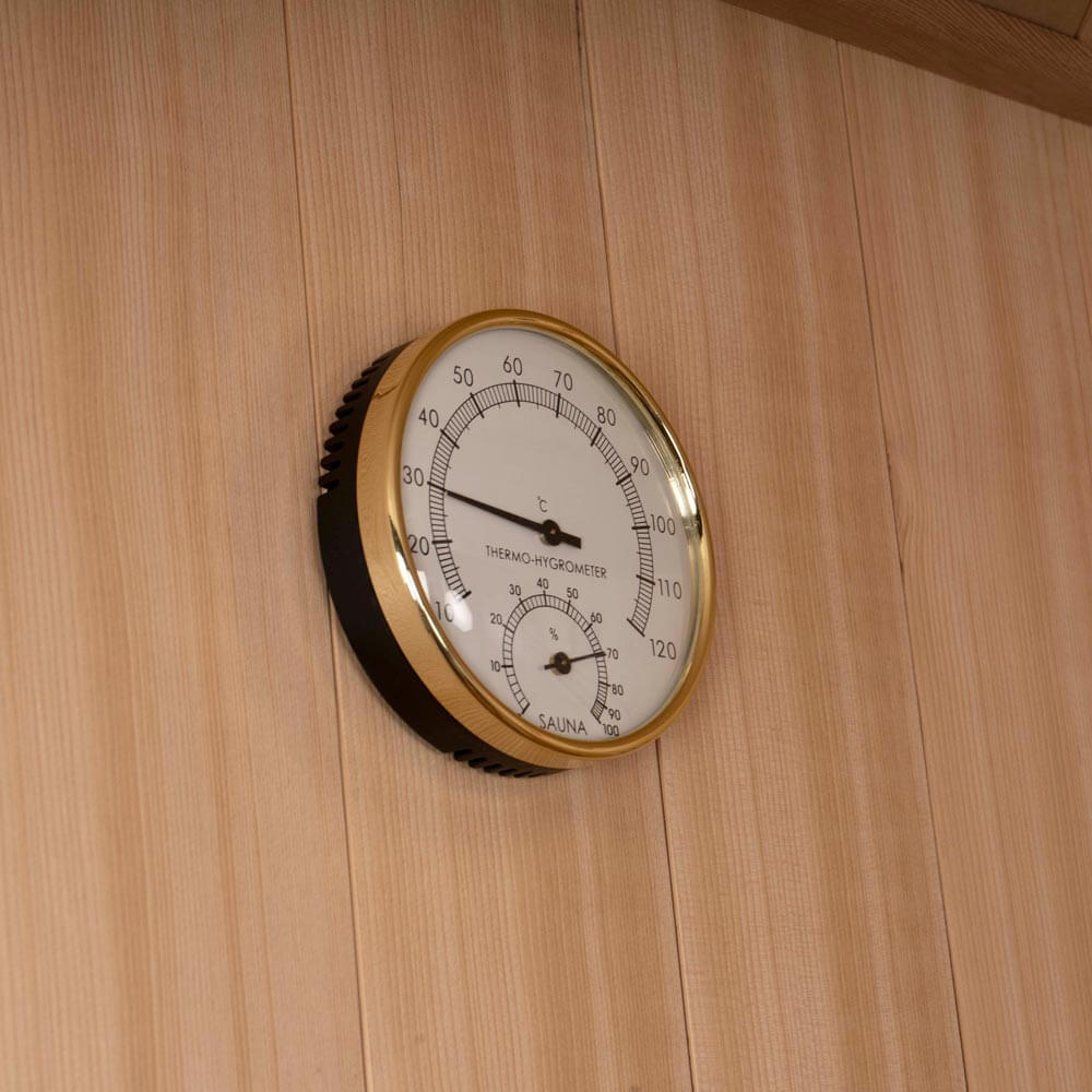 - Lieferung mit komplettem Sauna Zubehör (Kelch, Kelle, Sanduhr und Thermometer, abgebildete Saunakopfstütze ist nicht enthalten)